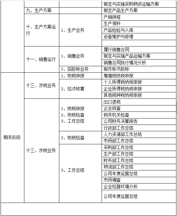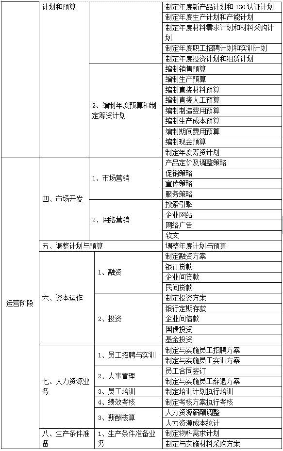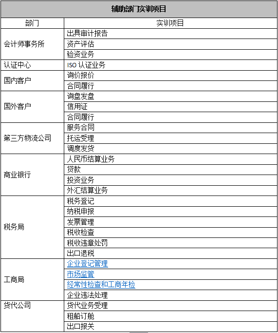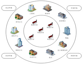 跨專業(ye)(ye)平臺主(zhu)要(yao)由搭建平臺運行(xing)環境、制造(zao)(zao)企(qi)業(ye)(ye)運營、行(xing)政(zheng)業(ye)(ye)務(wu)和金融業(ye)(ye)務(wu)等(deng)幾大(da)部(bu)分組成。以現代制造(zao)(zao)行(xing)業(ye)(ye)為藍本,設(she)置總(zong)經理辦公(gong)室、銷售(shou)部(bu)、生產部(bu)、采購部(bu)、倉儲部(bu)、外(wai)貿部(bu)、市場(chang)部(bu)、財務(wu)部(bu)、人才資(zi)源部(bu)、企(qi)業(ye)(ye)投資(zi)融部(bu)等(deng)十大(da)制造(zao)(zao)企(qi)業(ye)(ye)職能部(bu)門;真實模擬(ni)行(xing)政(zheng)辦事(shi)部(bu)門,提(ti)供(gong)(gong)工(gong)商局、稅務(wu)局、會(hui)計(ji)事(shi)務(wu)所(suo)、銀行(xing)、物(wu)流、保險公(gong)司、貸代公(gong)司等(deng)辦事(shi)場(chang)所(suo);系統虛擬(ni)扮演公(gong)安(an)局、質量(liang)與(yu)(yu)技術(shu)監督(du)局、勞(lao)動與(yu)(yu)社(she)會(hui)保障局、原材料(liao)供(gong)(gong)應商、海(hai)關(guan)(guan)、商檢(jian)、外(wai)匯管(guan)理局、船公(gong)司等(deng)服(fu)(fu)務(wu)性(xing)部(bu)門行(xing)業(ye)(ye)。攘括了與(yu)(yu)制造(zao)(zao)行(xing)業(ye)(ye)有(you)關(guan)(guan)的所(suo)有(you)相關(guan)(guan)行(xing)政(zheng)辦事(shi)部(bu)門和服(fu)(fu)務(wu)性(xing)行(xing)業(ye)(ye)。
