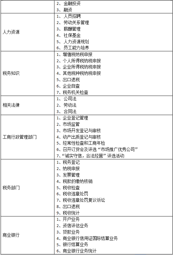 B、含蓋專(zhuan)(zhuan)業(ye)(ye)廣(guang)泛:平臺實現以崗位(wei)替代(dai)專(zhuan)(zhuan)業(ye)(ye)的模式,有(you)企(qi)業(ye)(ye)管(guan)(guan)理者(zhe)、銷(xiao)售(shou)、采購(gou)、生產、人(ren)力(li)資(zi)源、財(cai)務(wu)人(ren)員、投融(rong)(rong)資(zi)、倉儲、外貿業(ye)(ye)務(wu)員、行政辦事人(ren)員等(deng)(deng)等(deng)(deng)幾十(shi)個崗位(wei),融(rong)(rong)合的專(zhuan)(zhuan)業(ye)(ye)有(you)企(qi)業(ye)(ye)管(guan)(guan)理、會計、工商管(guan)(guan)理、物流、金融(rong)(rong)、國際貿易等(deng)(deng)多(duo)個專(zhuan)(zhuan)業(ye)(ye)。