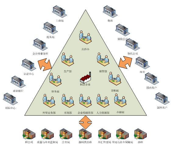 核心系(xi)統(tong)指的(de)是制造企(qi)(qi)(qi)業內部(bu)(bu)經營和管理系(xi)統(tong),由總經理辦(ban)公室、銷售部(bu)(bu)、生(sheng)產部(bu)(bu)、采購(gou)部(bu)(bu)、倉儲部(bu)(bu)、外貿部(bu)(bu)、市場部(bu)(bu)、財務部(bu)(bu)、人才資源部(bu)(bu)、企(qi)(qi)(qi)業投(tou)資融資部(bu)(bu)等部(bu)(bu)門構(gou)成,下設21個(ge)崗位,各施其職,來(lai)完成企(qi)(qi)(qi)業的(de)運作。